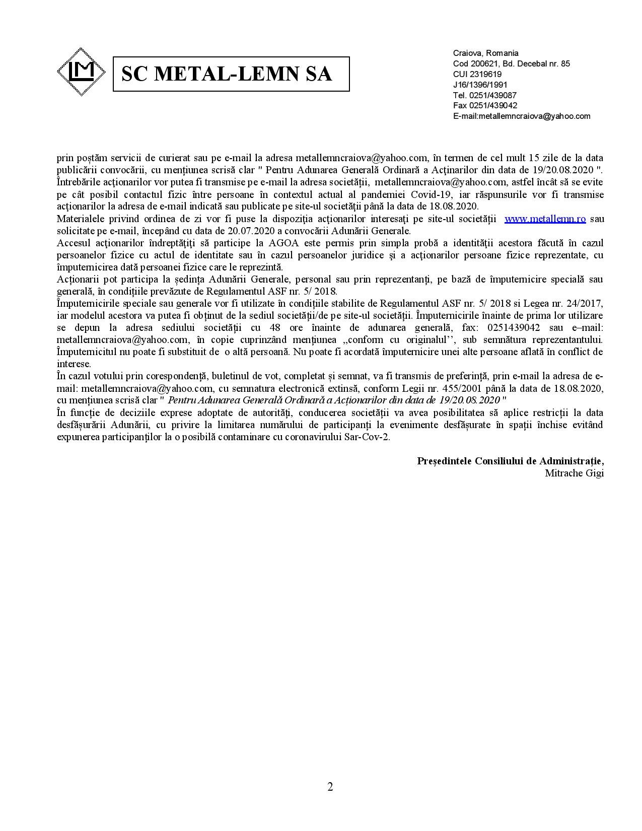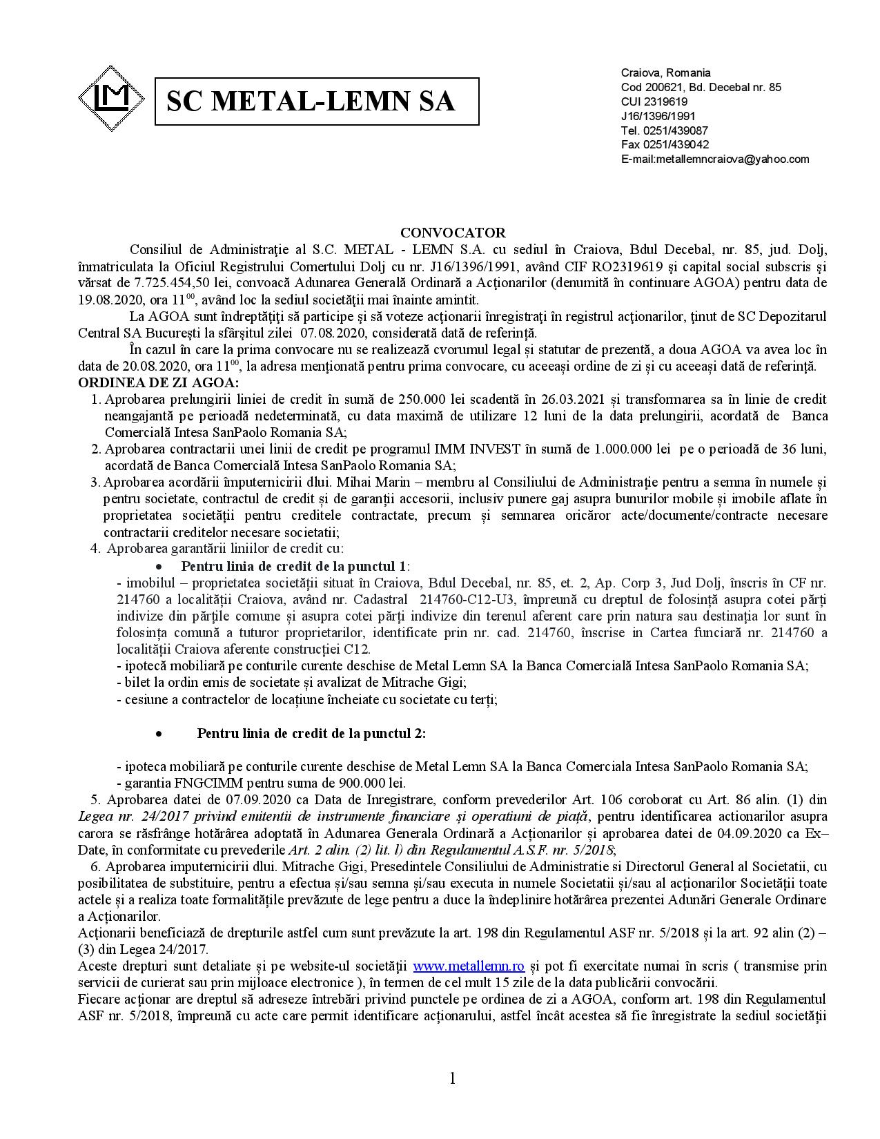 Convocator AGOA 19.08.2020 – 20.08.2020